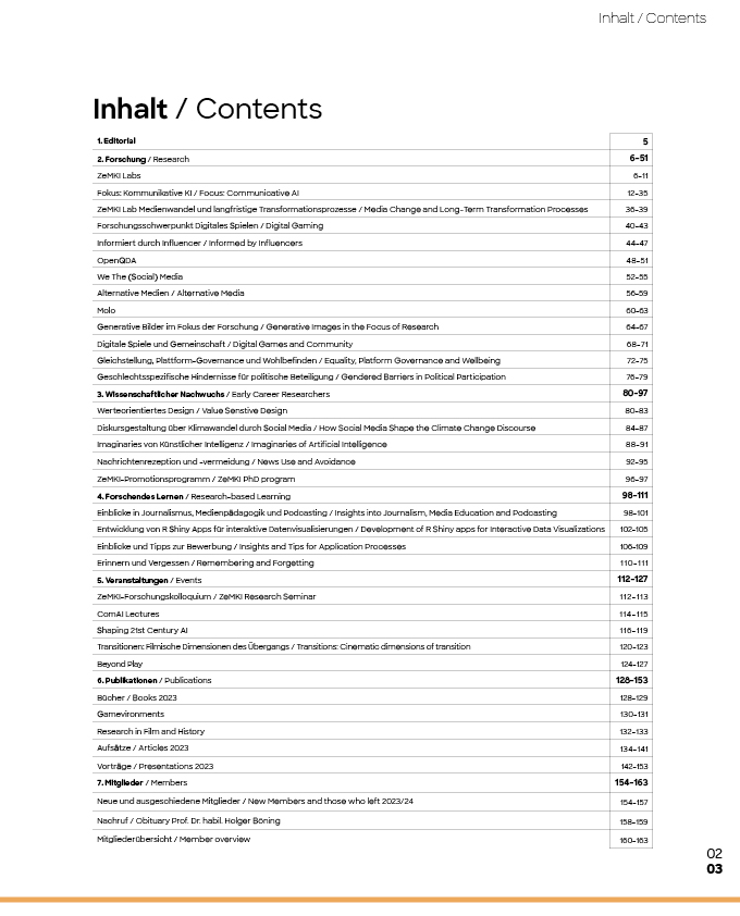 Mit 2025 steht uns allen nun etwas ganz Besonderes bevor: Das ZeMKI wird 20 Jahre alt! Das wollen wir am 23. und 24. Oktober 2025 gemeinsam mit einer Tagung zum Thema „20 Years into the Future: What is our vision of media, data, and society?“ feiern. Sie und Ihr alle seid herzlich eingeladen zu kommen. Einen Call für diese Jubiläumstagung findet sich am Ende dieses Forschungsberichts.
